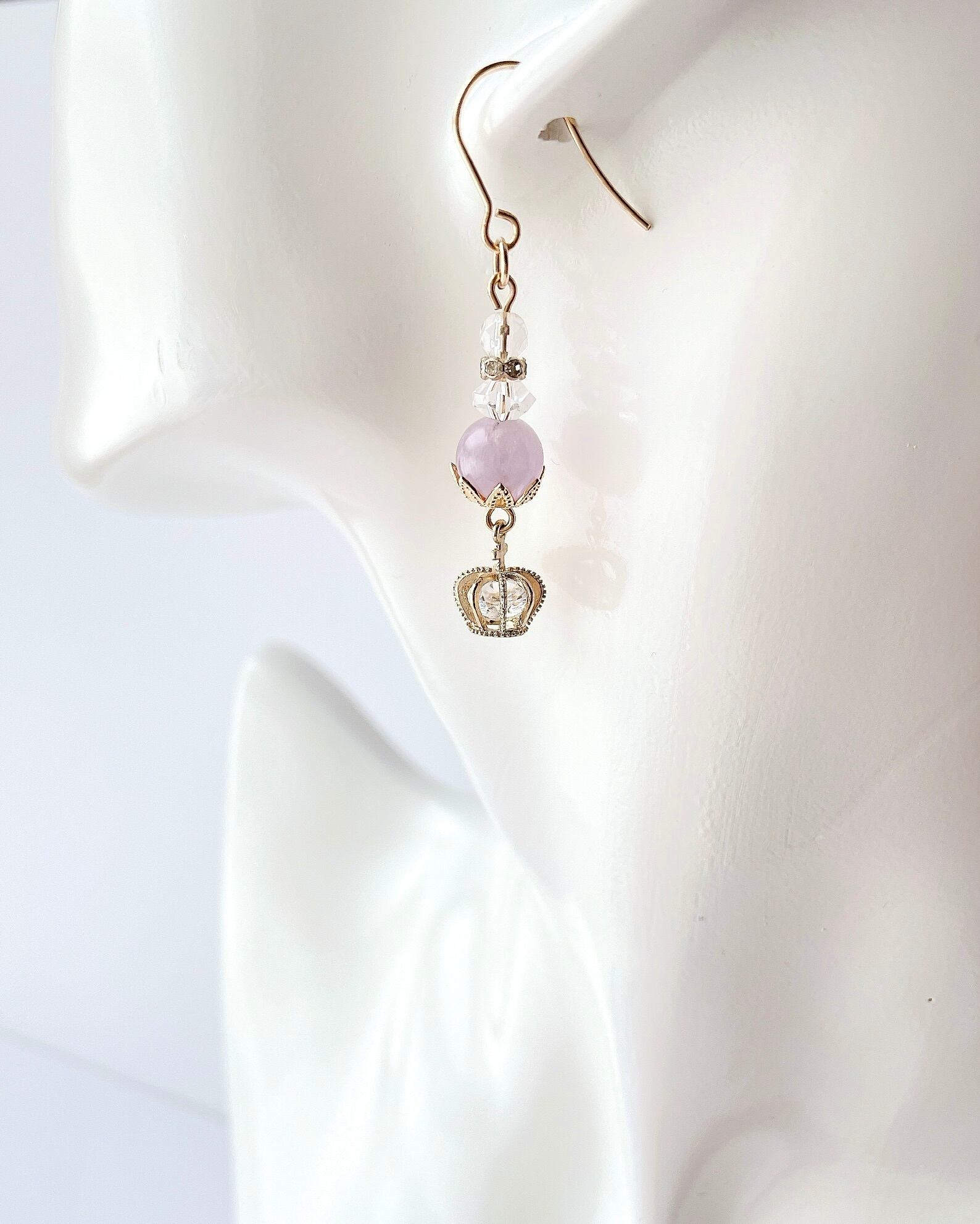愛の守護石 天然石ピアス(ラベンダーアメジスト)エンジェルストーン
